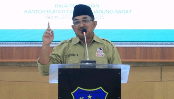 TANJAB BARAT, KUALA TUNGKAL, JN – Bupati Tanjung Jabung Barat, Drs. H. Anwar Sadat, M.Ag., menghadiri acara pelantikan Dewan Pimpinan Daerah (DPD) Tani Merdeka Indonesia Kabupaten Tanjung Jabung Barat Tahun 2025, yang digelar di Balai Pertemuan Kantor Bupati Tanjung Jabung Barat, Senin (27/10).