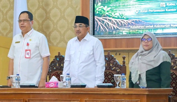 TANJAB BARAT, JN – Kabupaten Tanjung Jabung Barat (Tanjab Barat) mengambil langkah progresif dalam melindungi ekosistem pesisirnya. Bupati Drs. H. Anwar Sadat, M.Ag., secara resmi mengukuhkan Kelompok Kerja Mangrove Daerah (KKMD) sekaligus membuka Focus Group Discussion (FGD) lintas sektor untuk menyusun regulasi pengelolaan mangrove, Rabu (01/04).