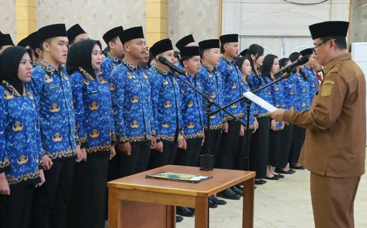TANJAB BARAT, JN – Momentum sakral menyelimuti Balai Pertemuan Kantor Bupati Tanjung Jabung Barat, Senin (14/04).Wakil Bupati Dr. H. Katamso, SA, S.E., M.E., secara resmi mengambil sumpah 192 PNS formasi 2024 dan 6 lulusan STTD. Namun, di balik seremonial tersebut, Wabup membawa pesan besar: Era birokrasi santai telah berakhir.