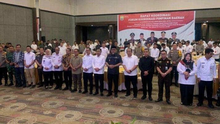 JAMBI, JN – Penjabat Sementara (Pjs) Gubernur Jambi, Sudirman mengajak Forkopimda dan semua komponen bersinergi dan berkoordinasi dalam menyukseskan Pilkada Serentak 2024 di Provinsi Jambi agar berjalan dengan aman, damai dan kondusif.